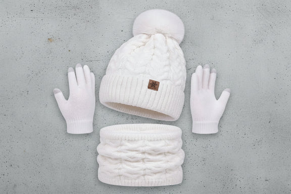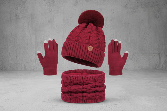 De combinatie van muts, sjaal en handschoenen zorgt ervoor dat je lichaamstemperatuur beter behouden blijft. De sjaal beschermt de nek tegen koude lucht, terwijl de muts warmteverlies via het hoofd vermindert. De handschoenen houden handen warm en comfortabel bij lage temperaturen.