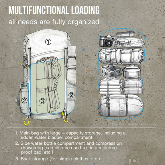 De rugzak beschikt over meerdere praktische opbergvakken, waaronder ingebouwde compartimenten en externe zakken voor snelle toegang tot essentials. Het ergonomische rugsysteem en de verstelbare schouderbanden zorgen voor stabiliteit en een comfortabele pasvorm, zelfs tijdens intensieve beweging.