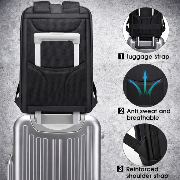 Deze laptop rugzak 15.6 inch is ontworpen voor iedereen die veilig en georganiseerd onderweg wil zijn. De laptop rugzak biedt ruimte voor jouw laptop, accessoires en zelfs kleding. Dankzij het moderne design gebruik je deze business backpack heren voor werk, reizen en dagelijks gebruik.