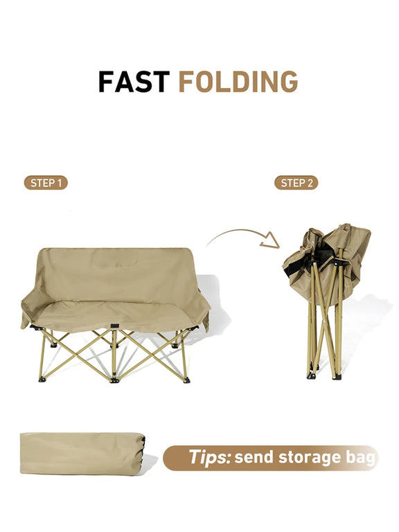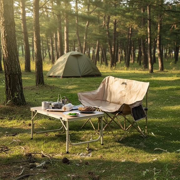 Deze dubbele campingstoel voor 2 personen is ontworpen voor comfortabel samen zitten tijdens het kamperen, op het strand of op festivals. Dankzij het extra brede zitvlak biedt de stoel voldoende ruimte voor twee volwassenen, zonder in te leveren op stabiliteit of comfort.