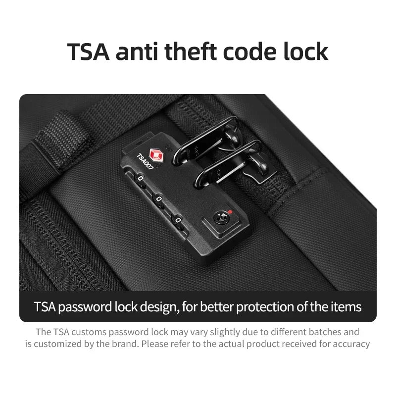 Deze premium reisrugzak is gemaakt van waterdicht Oxford-materiaal, voorzien van een TSA-gecertificeerd anti-diefstalcijfer slot en heeft een speciaal laptopcompartiment voor 17,3 inch laptops. Ideaal voor zakenreizen, citytrips, vliegvelden en dagelijks woon-werkverkeer.