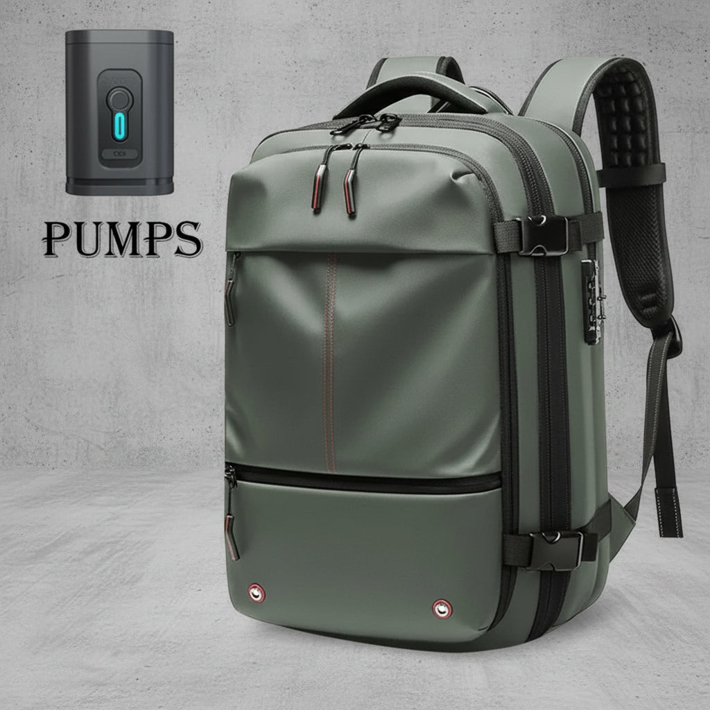 De Aventury Vacuum Compression Backpack is ontworpen voor reizigers, studenten en professionals die maximale ruimte willen zonder een zware, logge koffer mee te dragen. Dankzij het unieke vacuum-compressiesysteem vergroot je de capaciteit eenvoudig tot wel 55 liter – vergelijkbaar met een volledige 24-inch koffer – zonder extra gewicht.