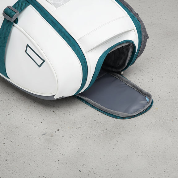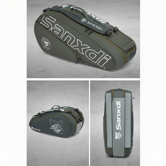 Met aparte vakken voor rackets, kleding en schoenen blijft alles netjes gescheiden. De tas is gemaakt van duurzaam nylon en beschermt je uitrusting tegen stoten en lichte regen. Dankzij de stevige handgrepen en comfortabele draagriem neem je hem eenvoudig mee naar trainingen, wedstrijden of toernooien.