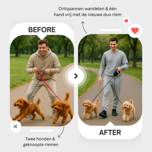 Bestel vandaag nog en ontdek hoe leuk wandelen met twee honden écht kan zijn!